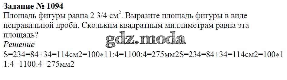ОТВЕТ на задание № 1094 Учебник по Математике 5 класс Виленкин