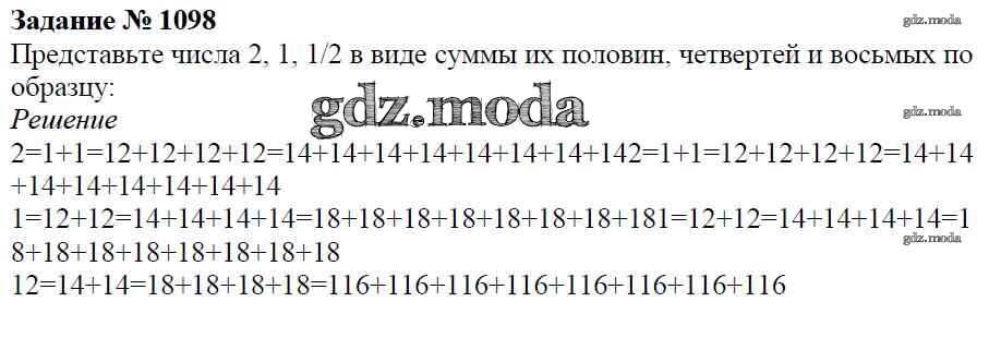 ОТВЕТ на задание № 1098 Учебник по Математике 5 класс Виленкин