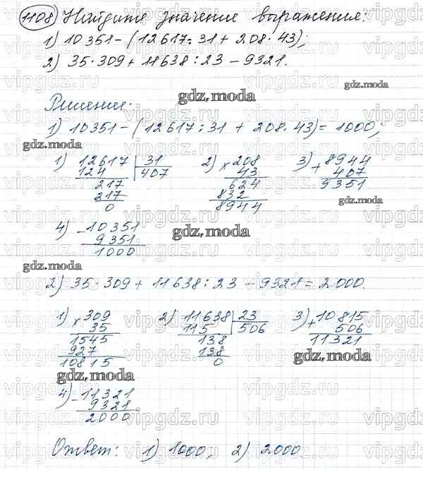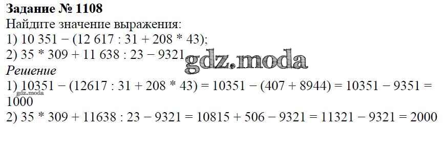 ОТВЕТ на задание № 1108 Учебник по Математике 5 класс Виленкин