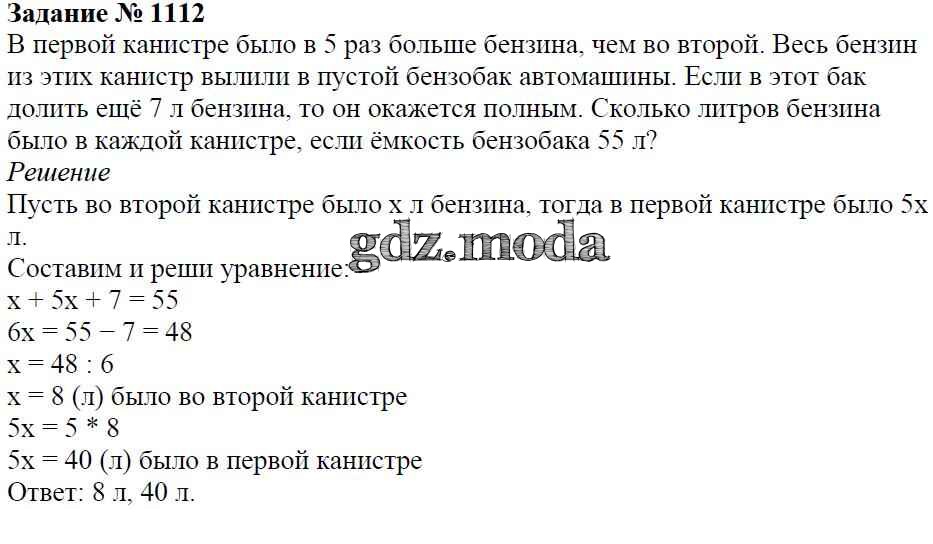 ОТВЕТ на задание № 1112 Учебник по Математике 5 класс Виленкин