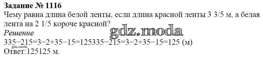 ОТВЕТ на задание № 1116 Учебник по Математике 5 класс Виленкин