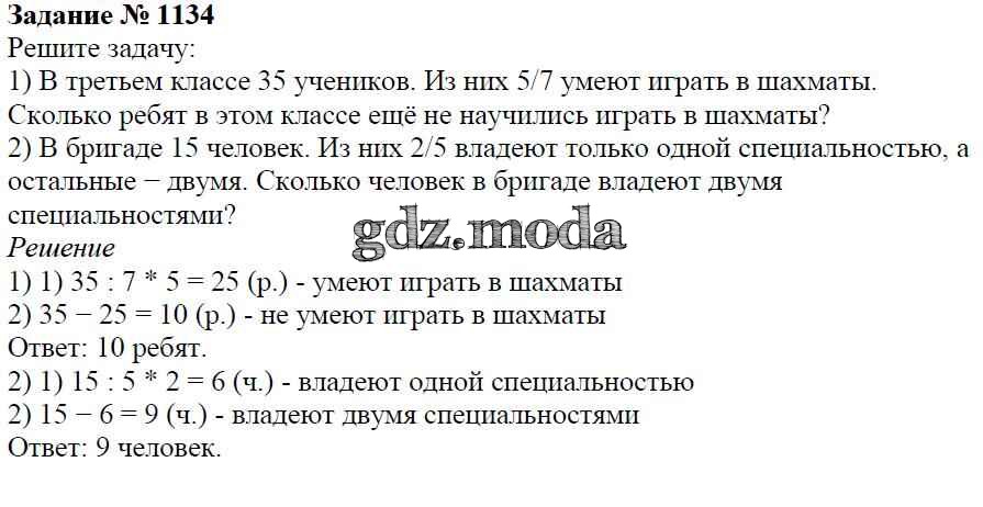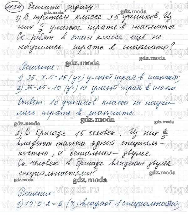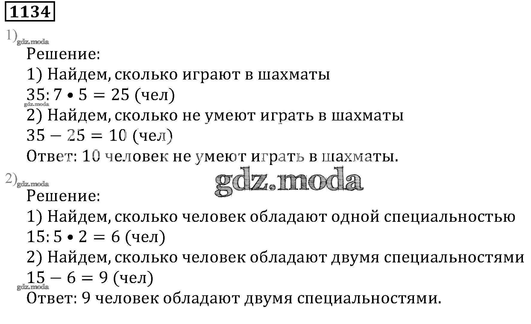 ОТВЕТ на задание № 1134 Учебник по Математике 5 класс Виленкин