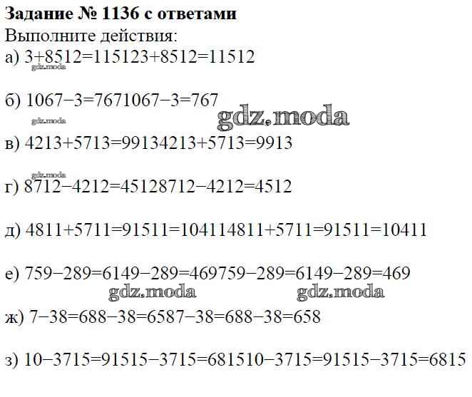 ОТВЕТ на задание № 1136 Учебник по Математике 5 класс Виленкин