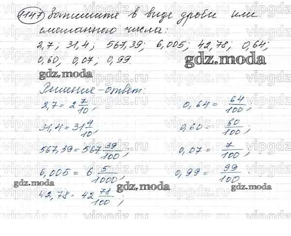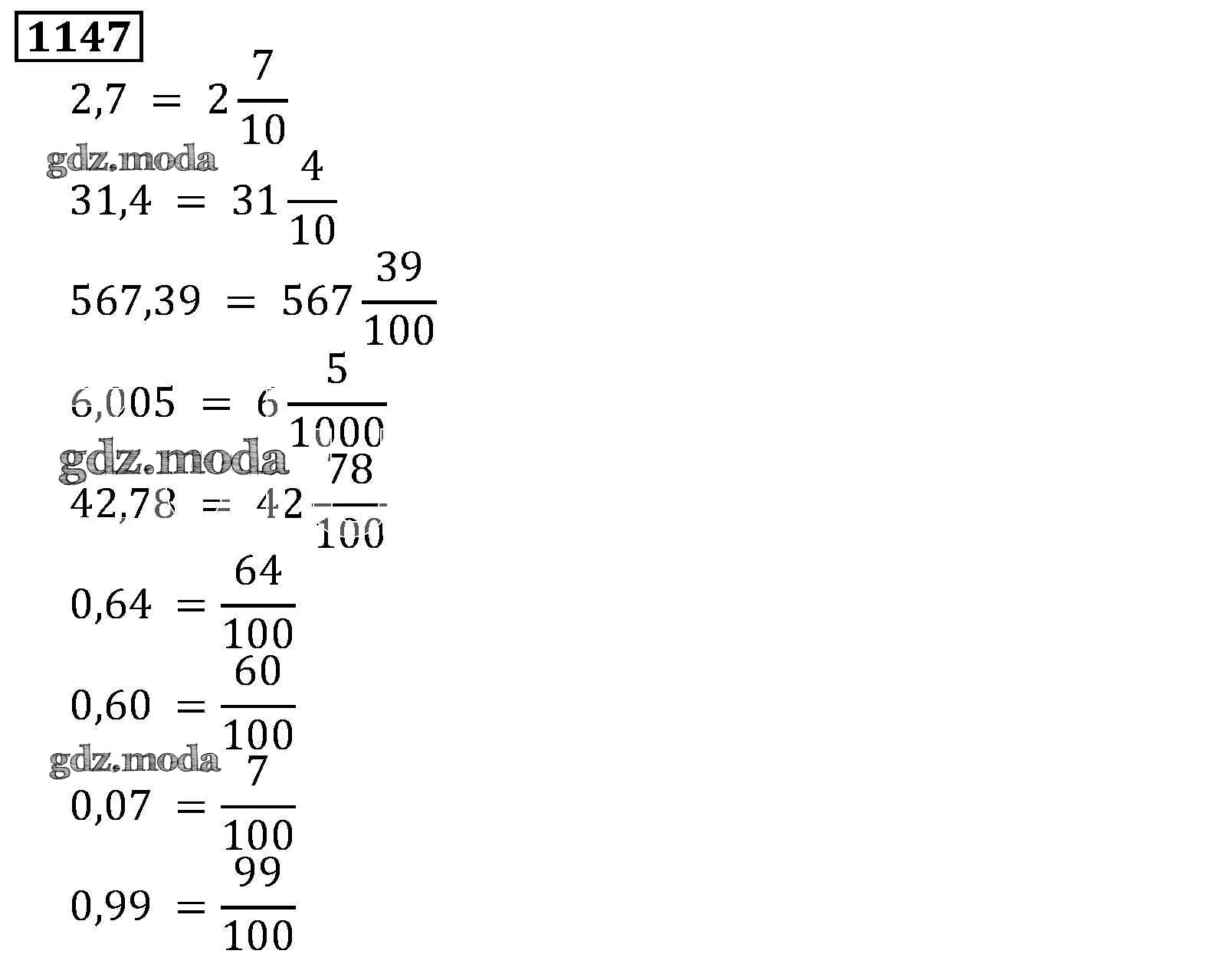 ОТВЕТ на задание № 1147 Учебник по Математике 5 класс Виленкин