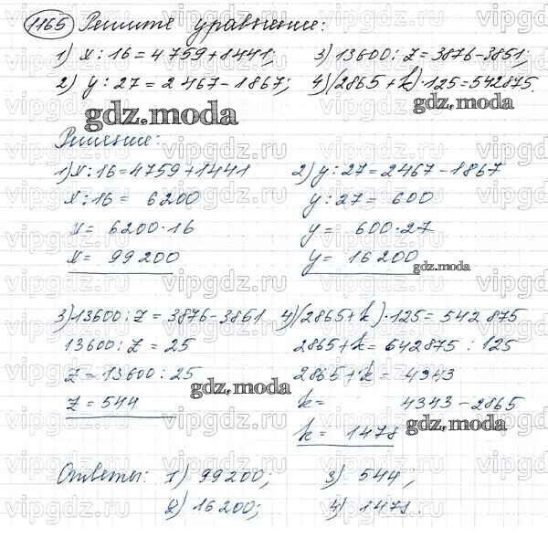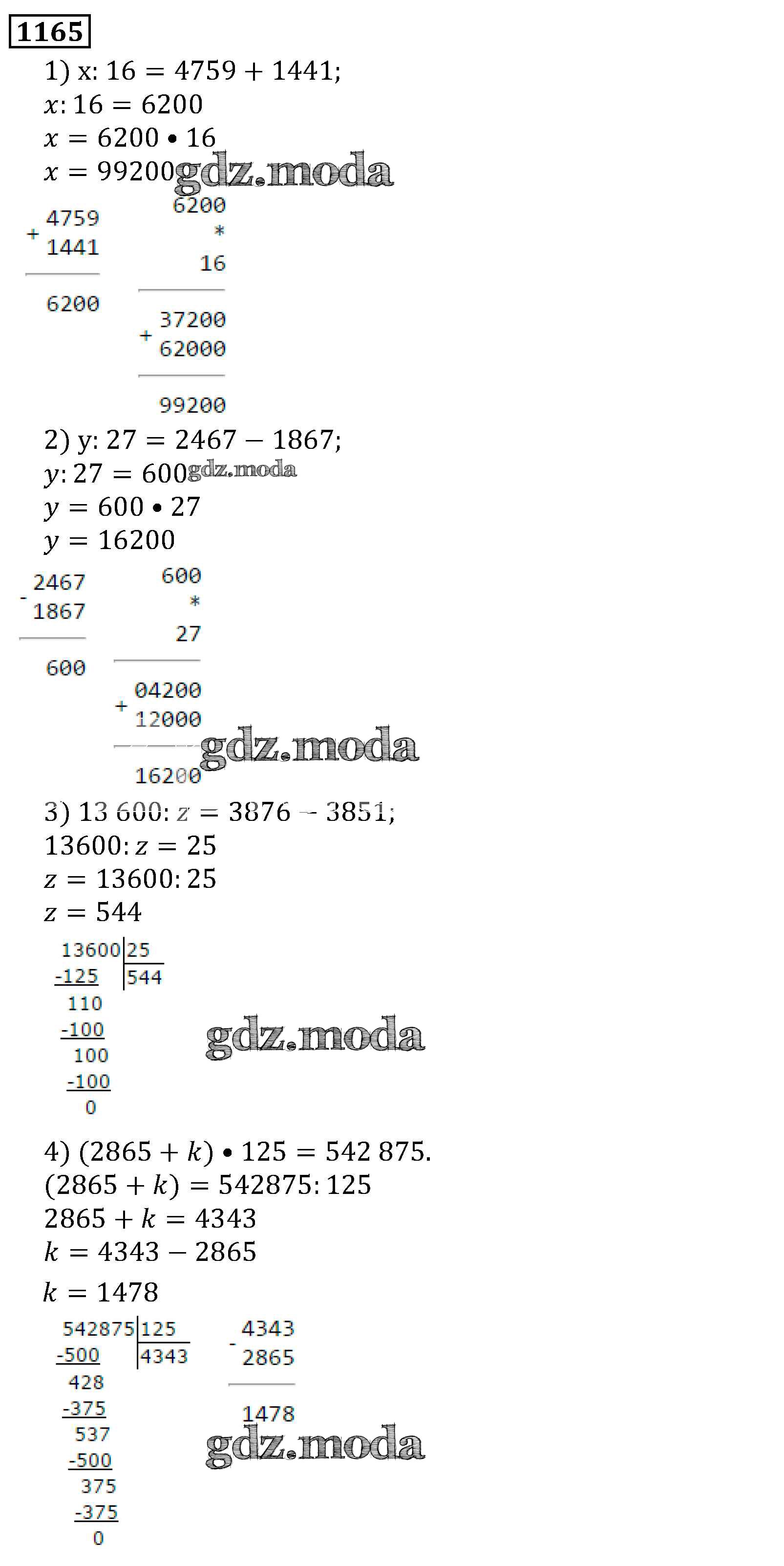 ОТВЕТ на задание № 1165 Учебник по Математике 5 класс Виленкин