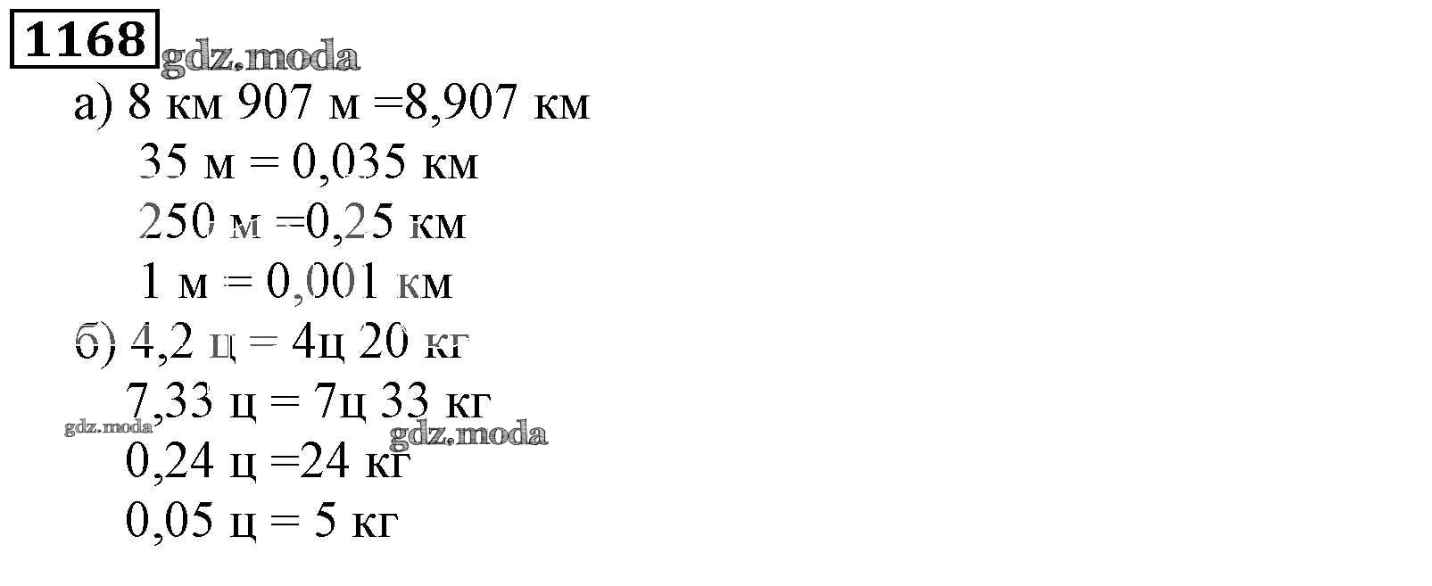 ОТВЕТ на задание № 1168 Учебник по Математике 5 класс Виленкин