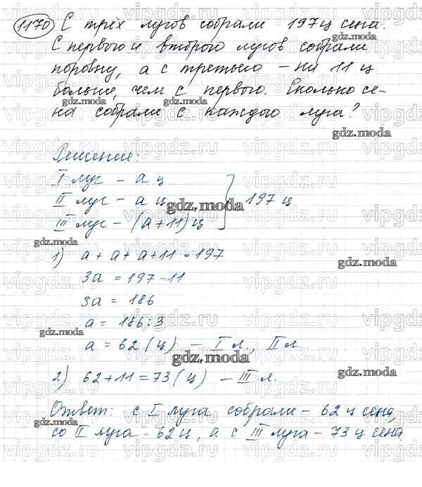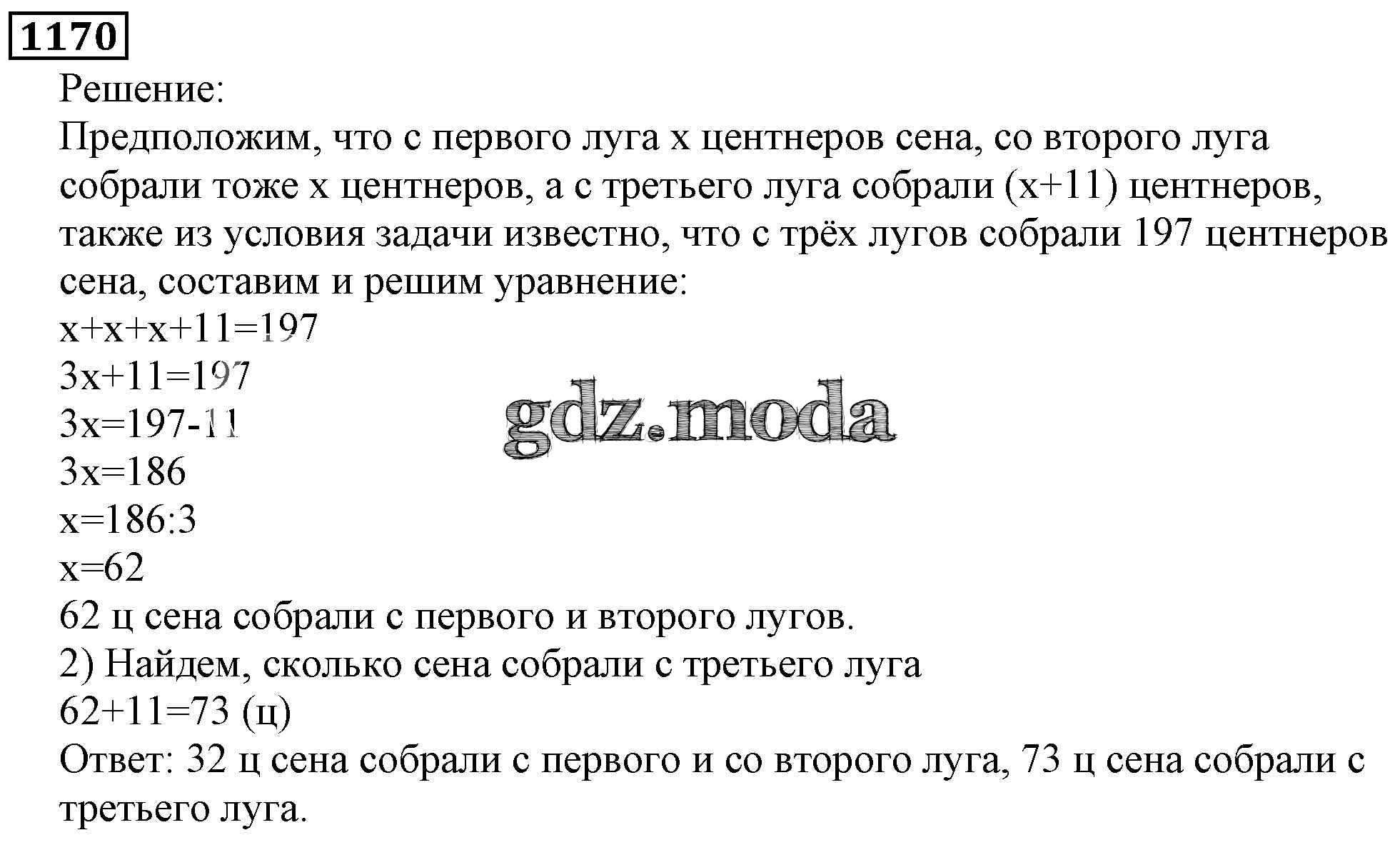 ОТВЕТ на задание № 1170 Учебник по Математике 5 класс Виленкин