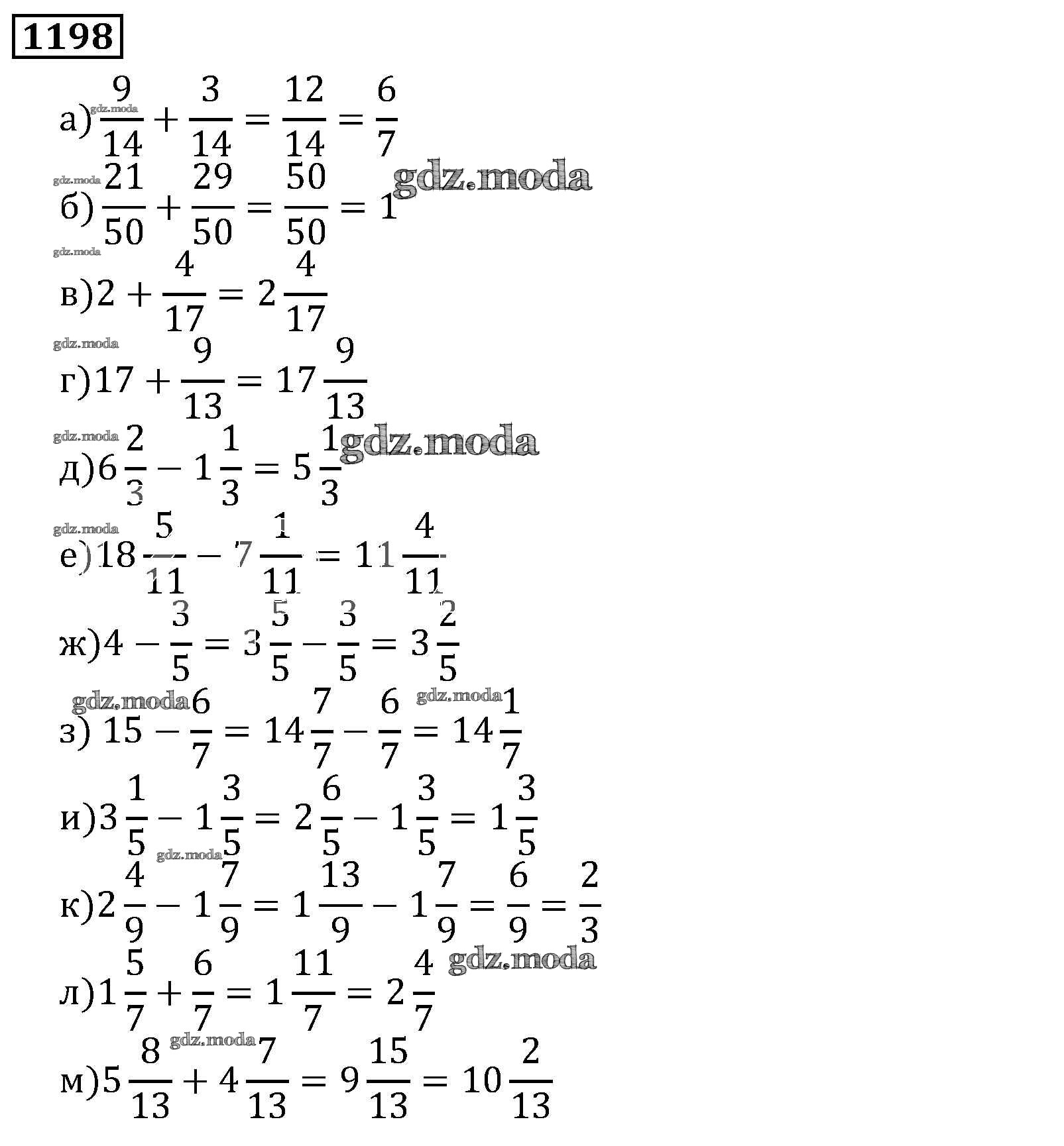 ОТВЕТ на задание № 1198 Учебник по Математике 5 класс Виленкин