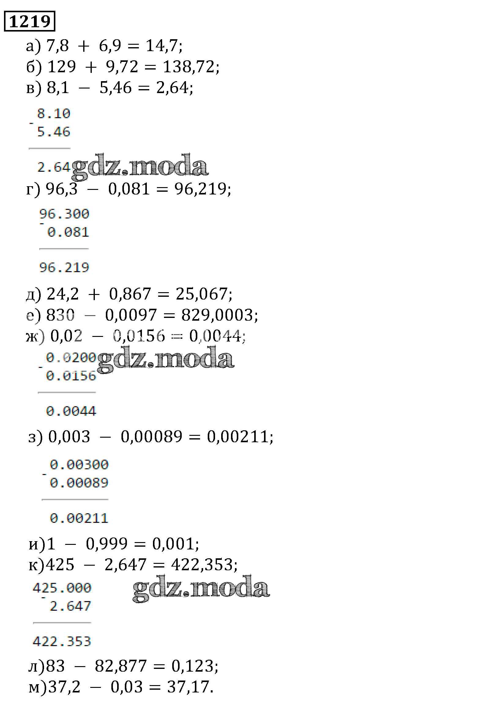 ОТВЕТ на задание № 1219 Учебник по Математике 5 класс Виленкин