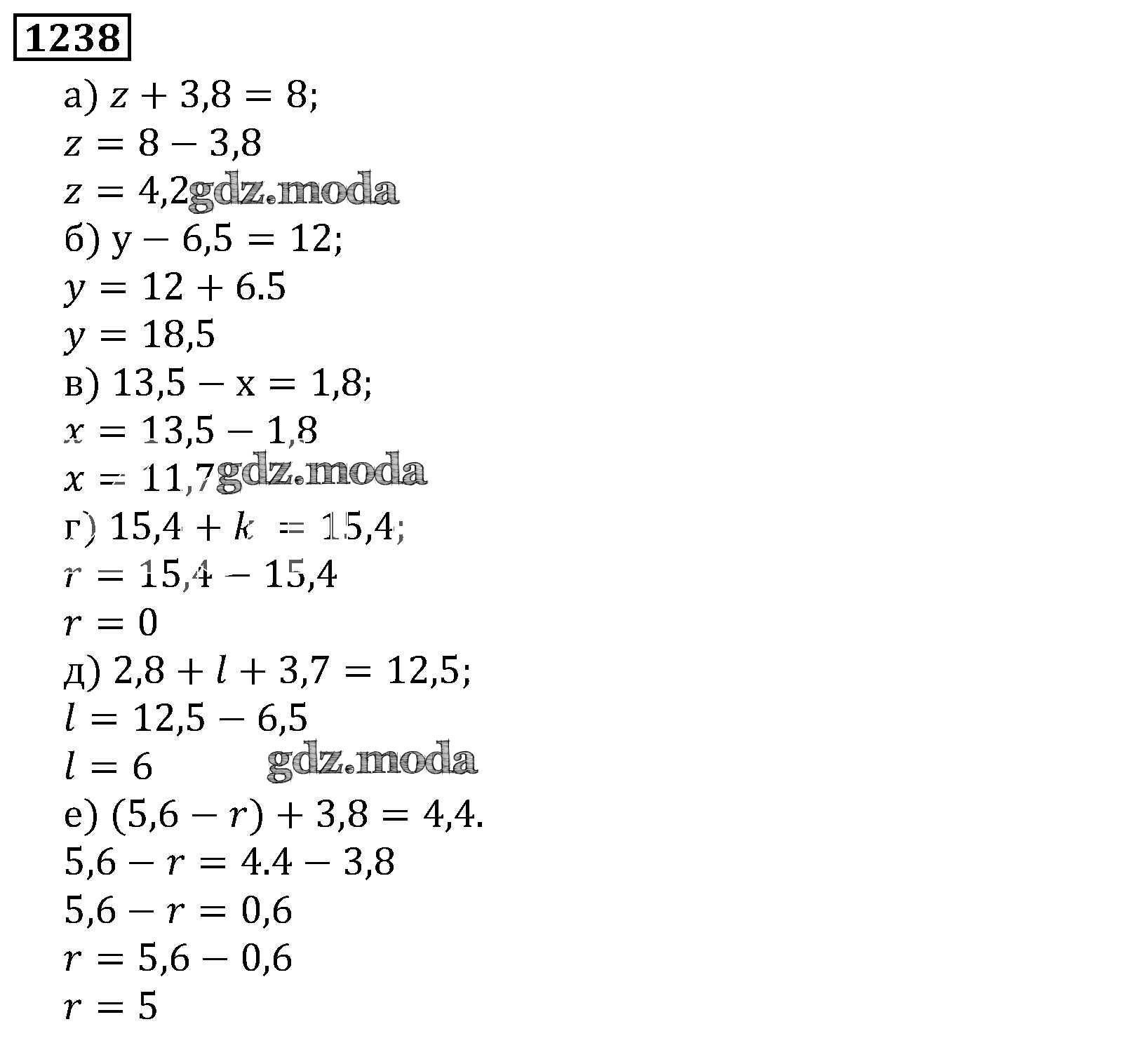 ОТВЕТ на задание № 1238 Учебник по Математике 5 класс Виленкин