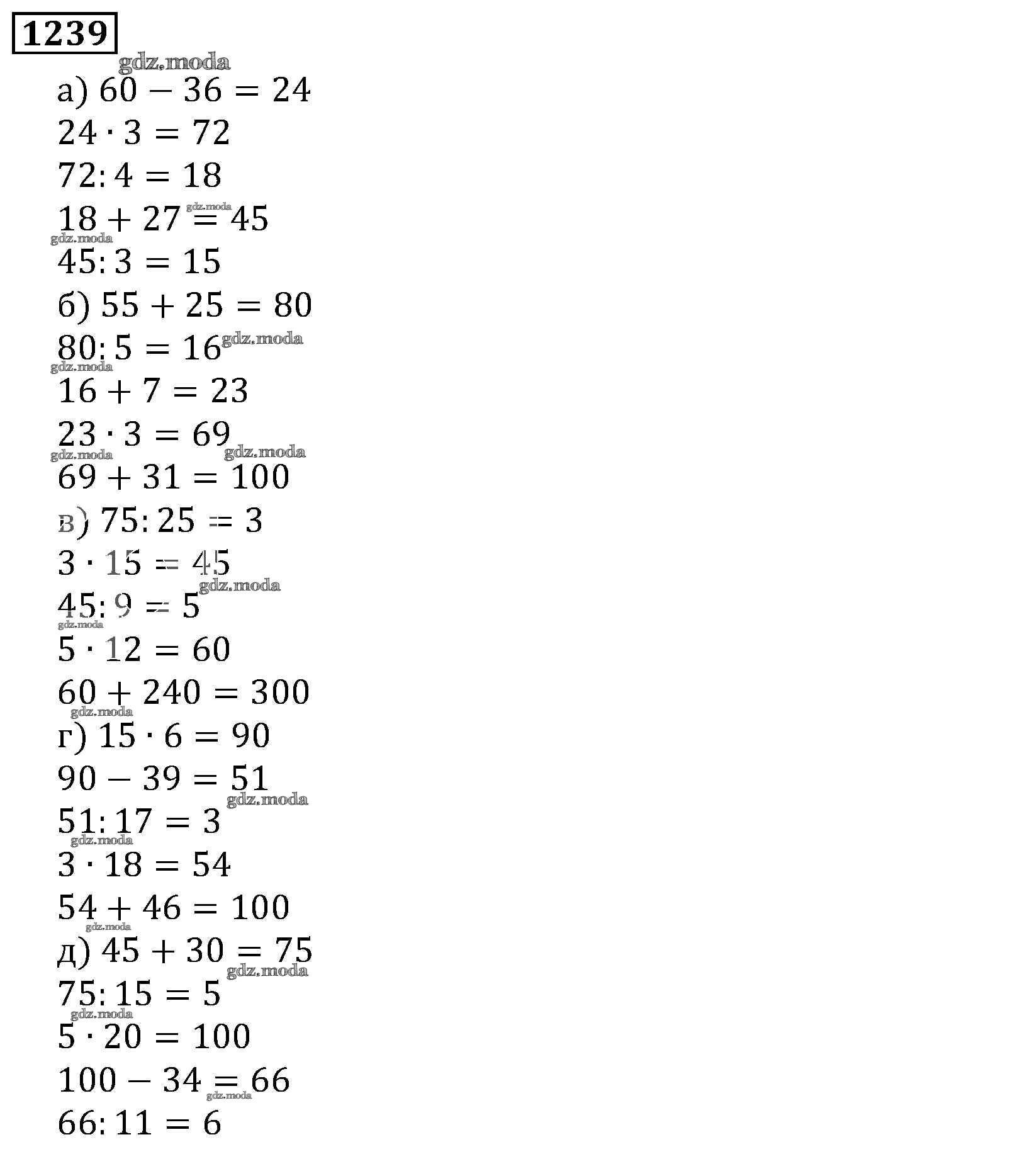 ОТВЕТ на задание № 1239 Учебник по Математике 5 класс Виленкин