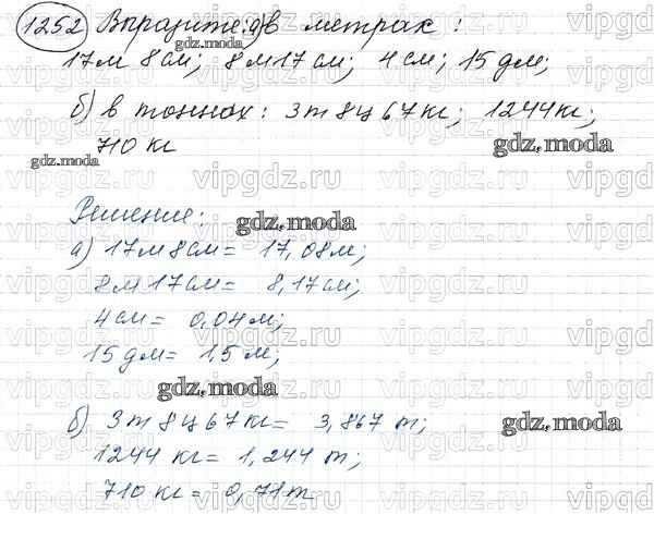 ОТВЕТ на задание № 1252 Учебник по Математике 5 класс Виленкин