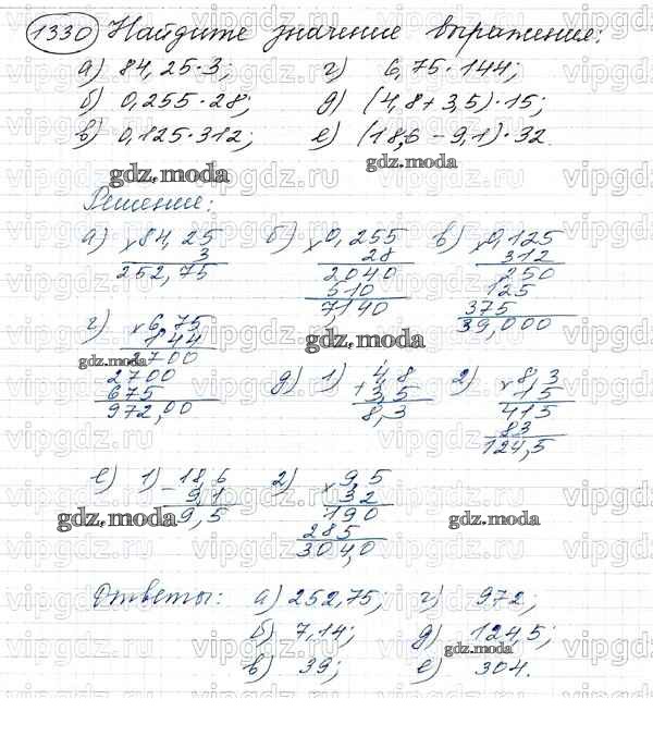 ОТВЕТ на задание № 1330 Учебник по Математике 5 класс Виленкин