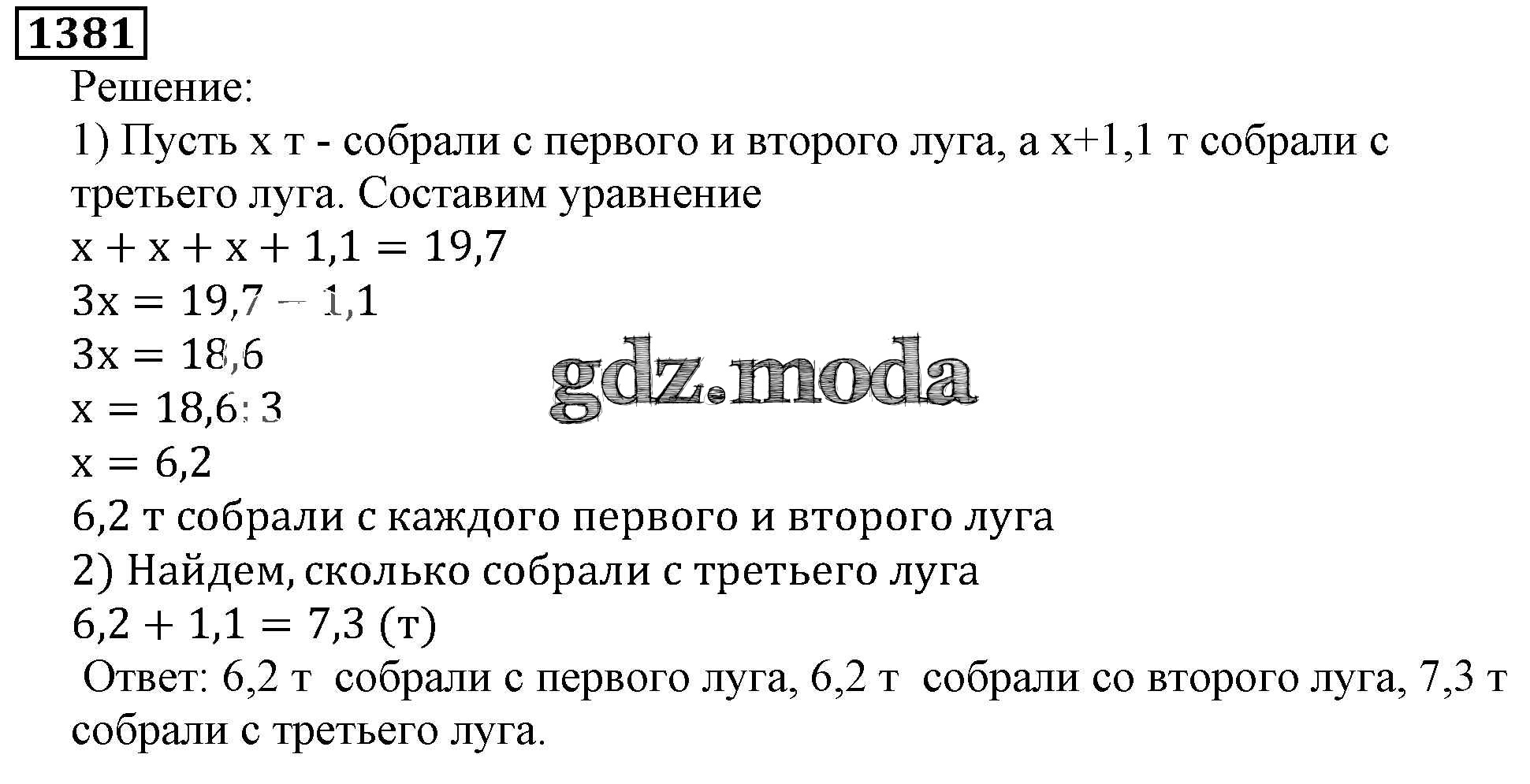 ОТВЕТ на задание № 1381 Учебник по Математике 5 класс Виленкин