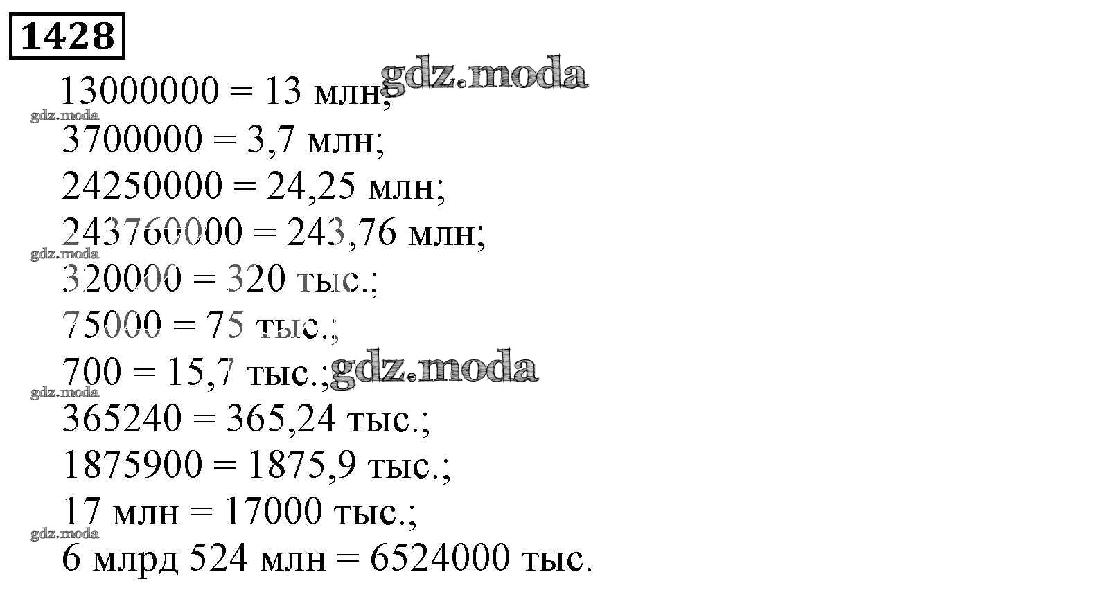 ОТВЕТ на задание № 1428 Учебник по Математике 5 класс Виленкин