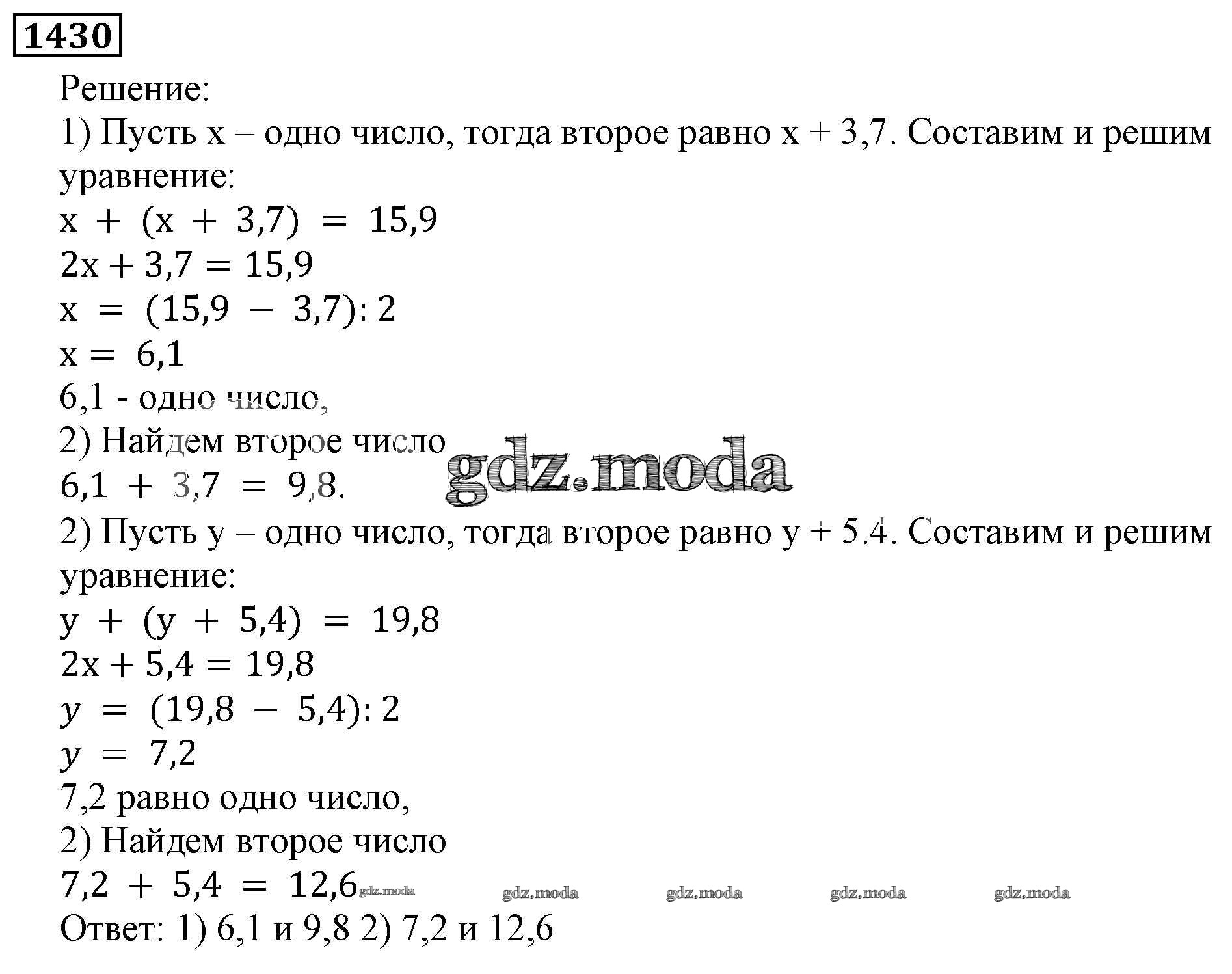 ОТВЕТ на задание № 1430 Учебник по Математике 5 класс Виленкин