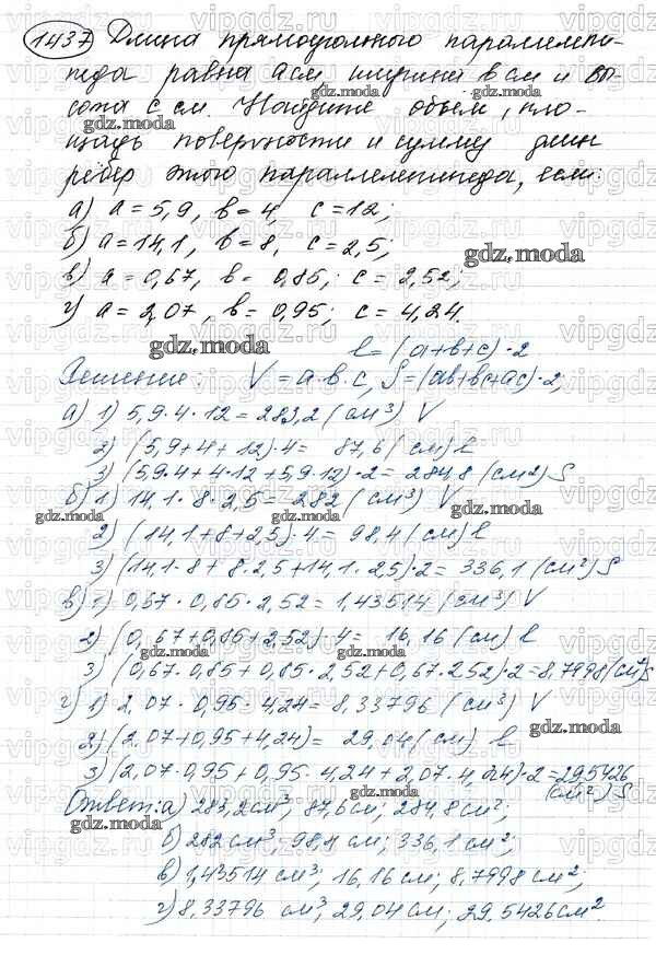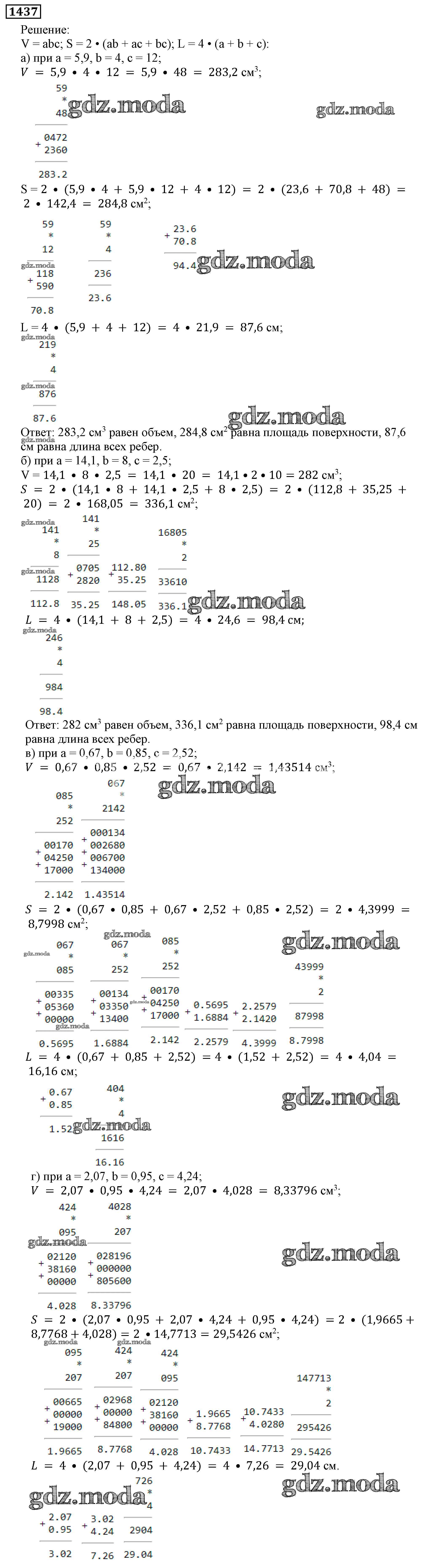 ОТВЕТ на задание № 1437 Учебник по Математике 5 класс Виленкин