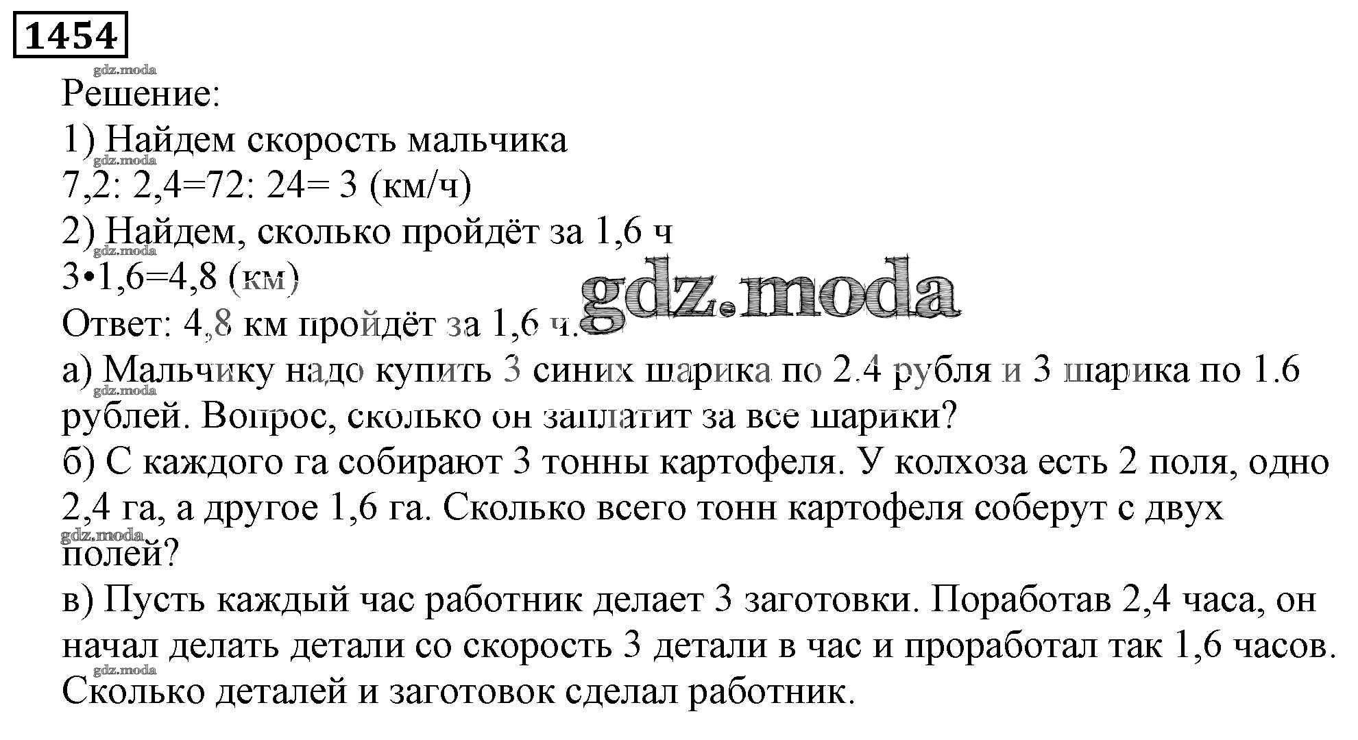 ОТВЕТ на задание № 1454 Учебник по Математике 5 класс Виленкин