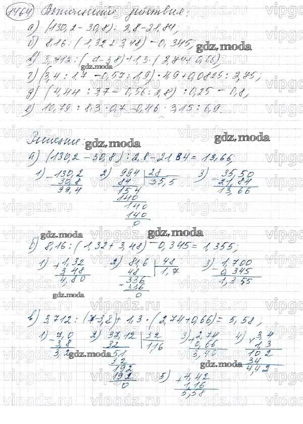 ОТВЕТ на задание № 1464 Учебник по Математике 5 класс Виленкин