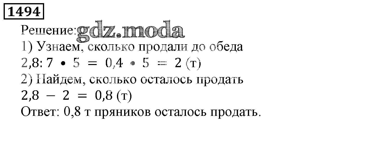 ОТВЕТ на задание № 1494 Учебник по Математике 5 класс Виленкин
