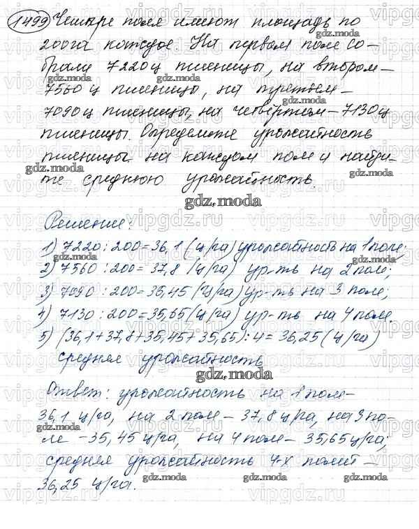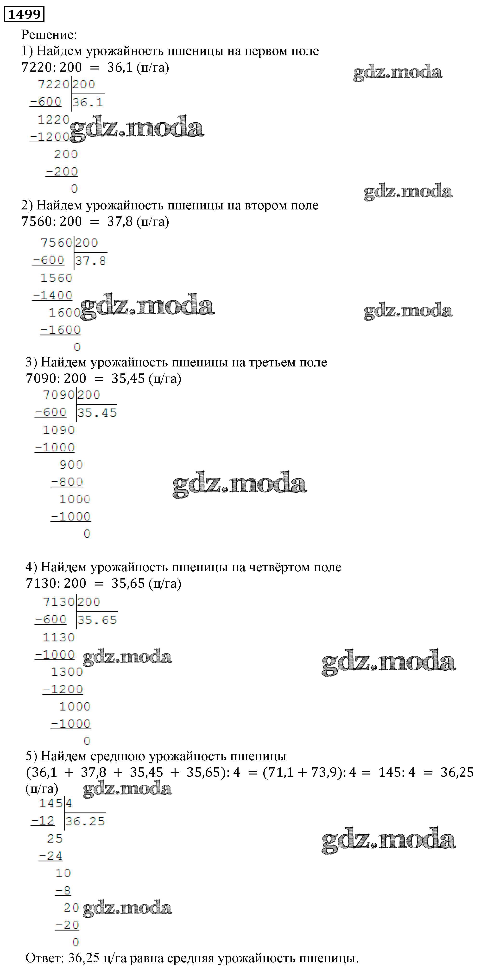 ОТВЕТ на задание № 1499 Учебник по Математике 5 класс Виленкин