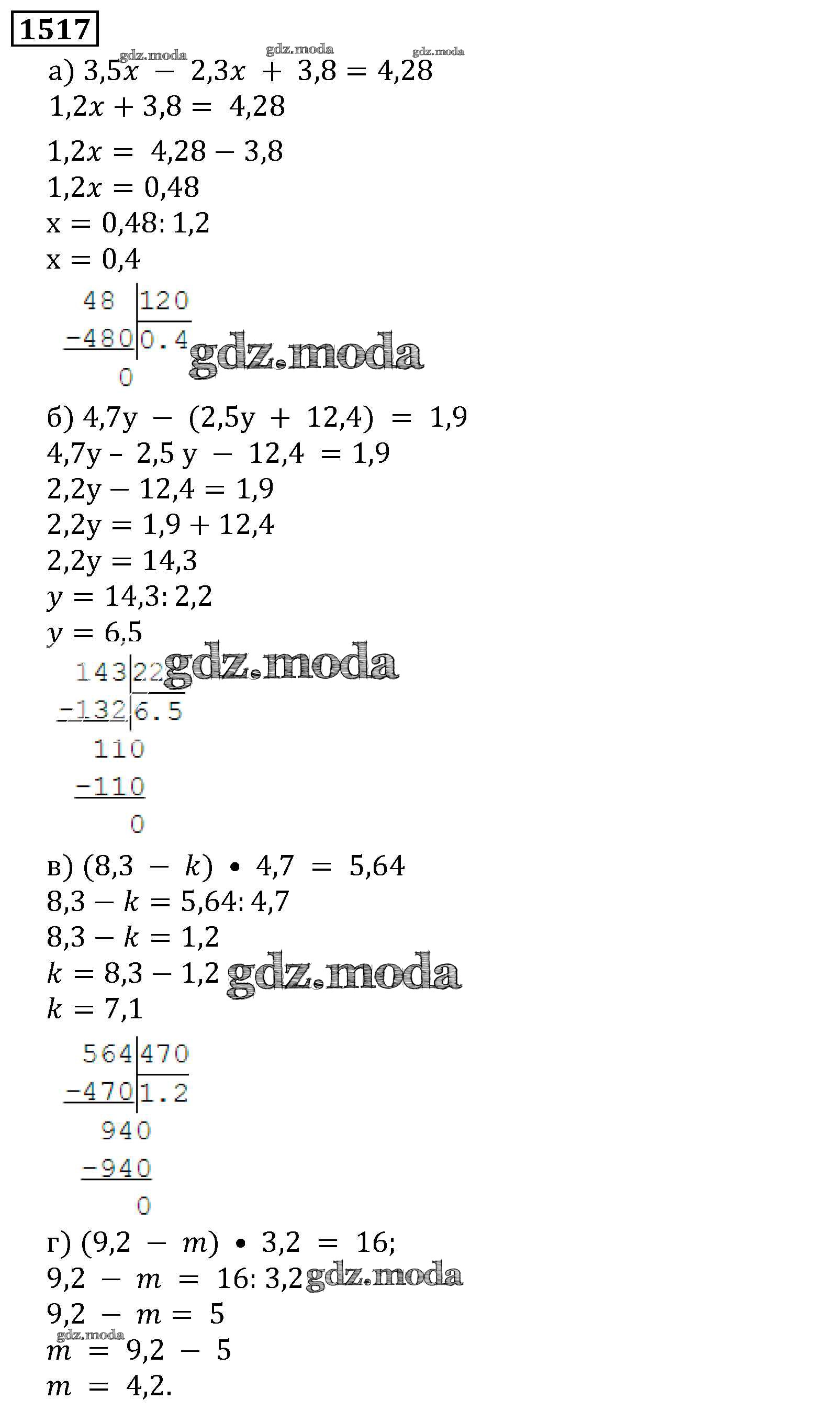 ОТВЕТ на задание № 1517 Учебник по Математике 5 класс Виленкин