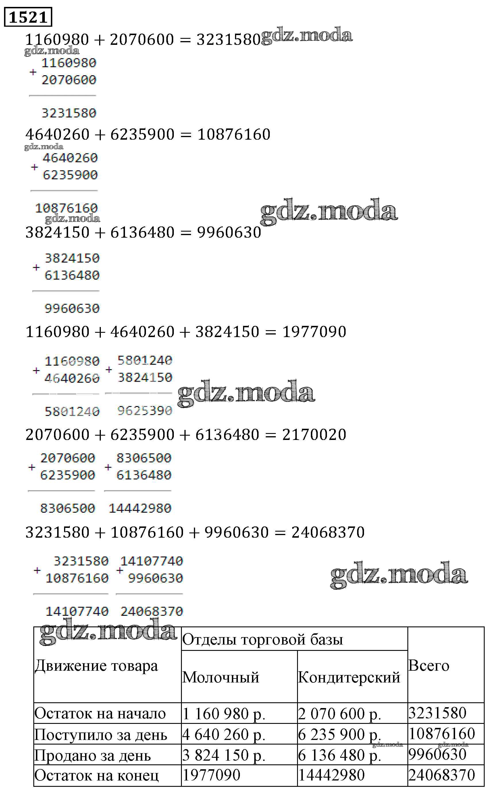 ОТВЕТ на задание № 1521 Учебник по Математике 5 класс Виленкин