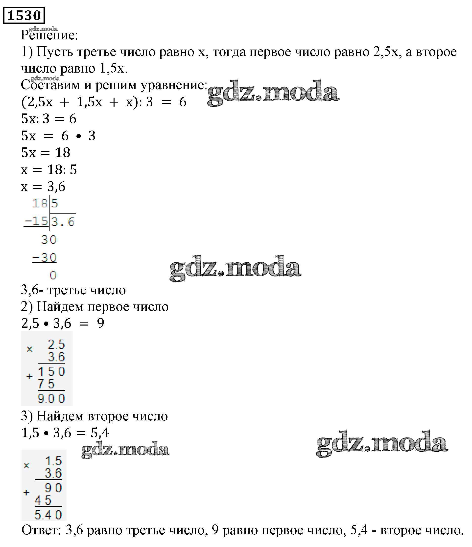 ОТВЕТ на задание № 1530 Учебник по Математике 5 класс Виленкин