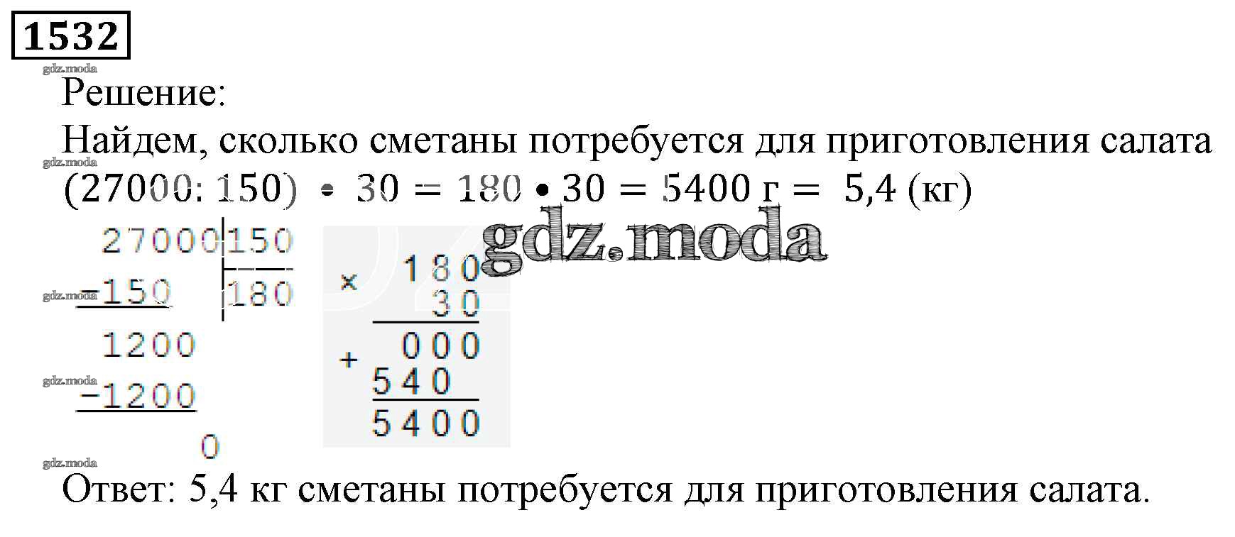 ОТВЕТ на задание № 1532 Учебник по Математике 5 класс Виленкин