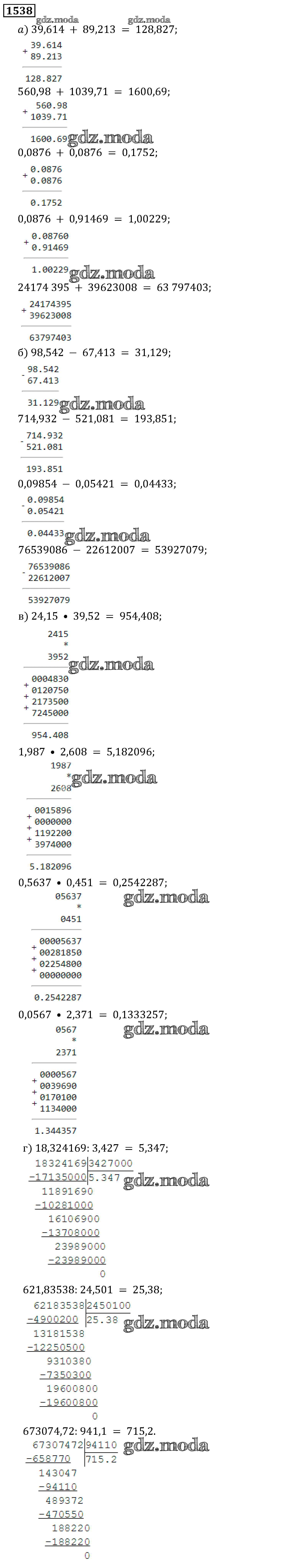 ОТВЕТ на задание № 1538 Учебник по Математике 5 класс Виленкин