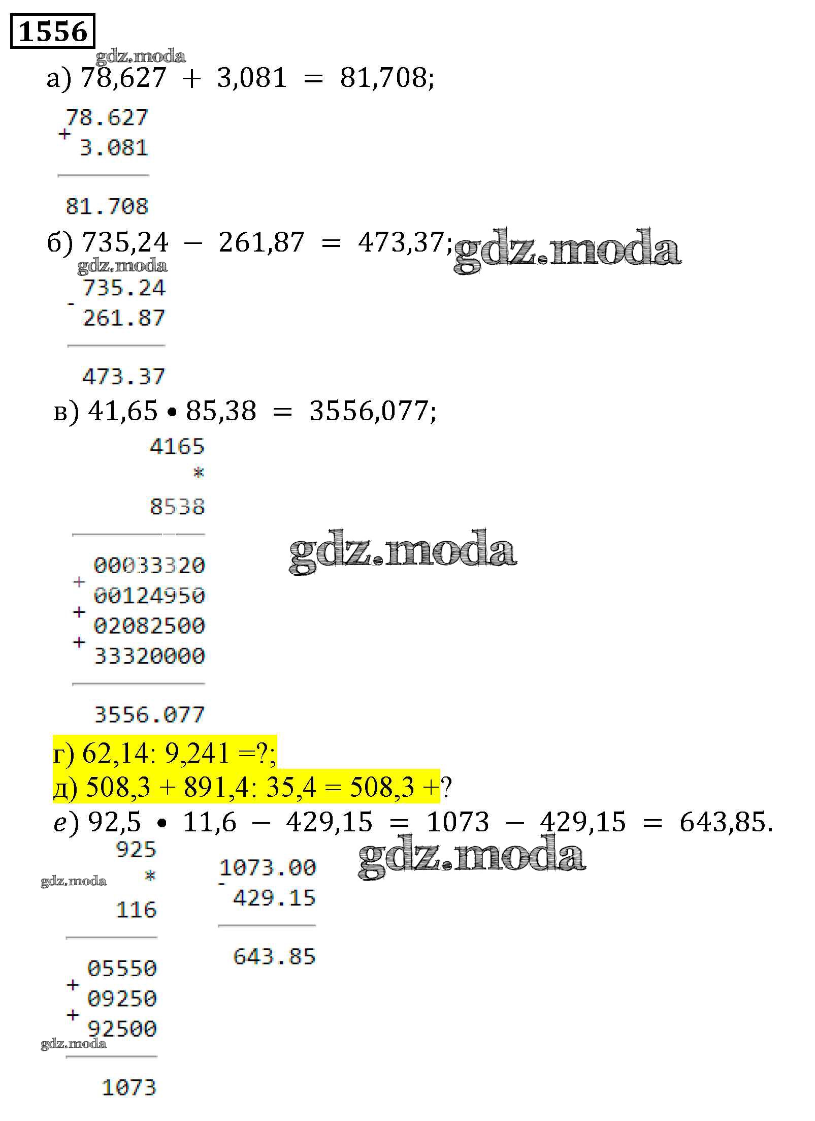 ОТВЕТ на задание № 1556 Учебник по Математике 5 класс Виленкин