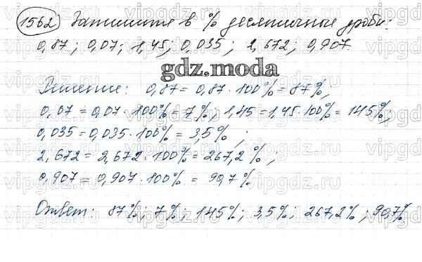 ОТВЕТ на задание № 1562 Учебник по Математике 5 класс Виленкин