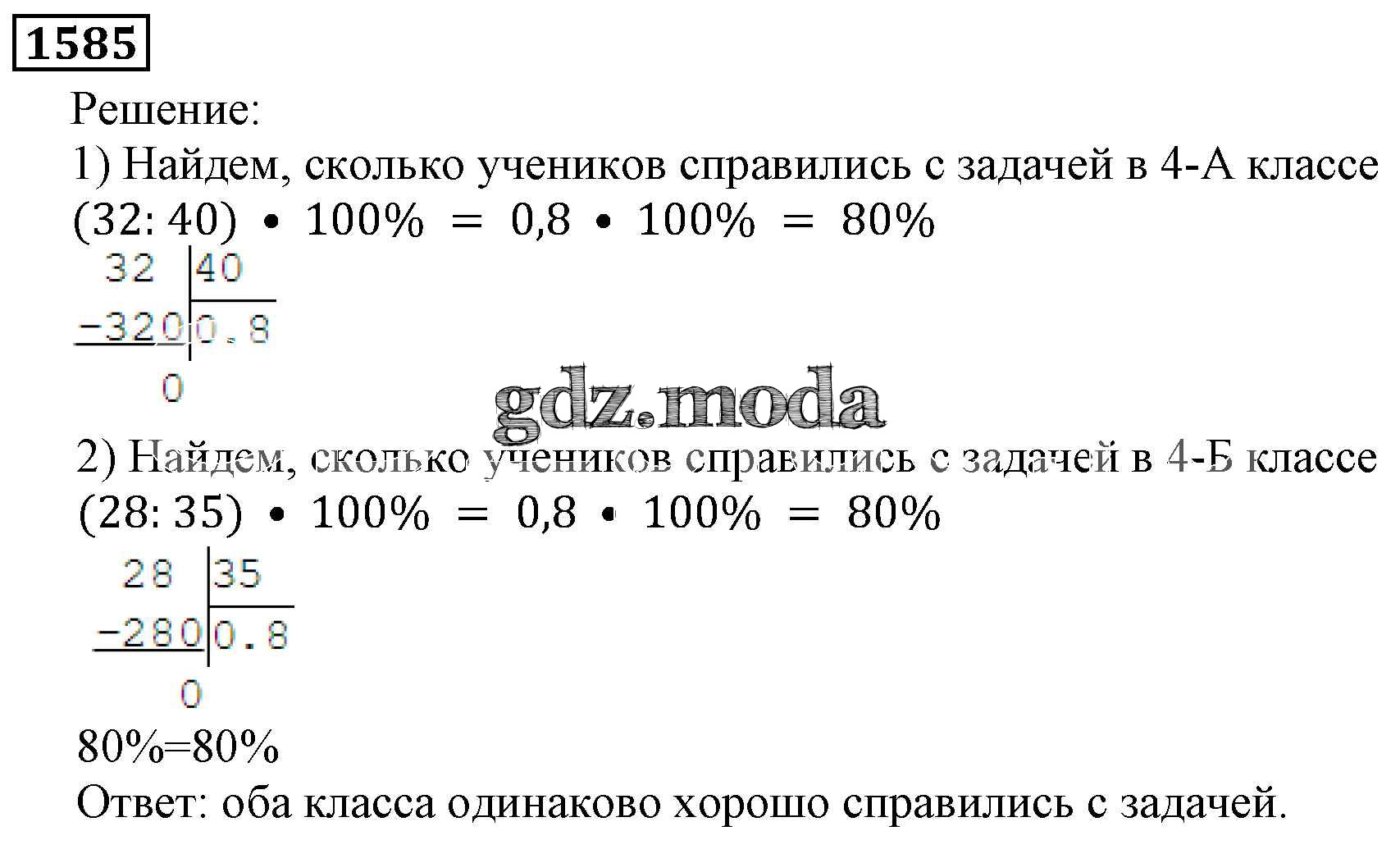 ОТВЕТ на задание № 1585 Учебник по Математике 5 класс Виленкин