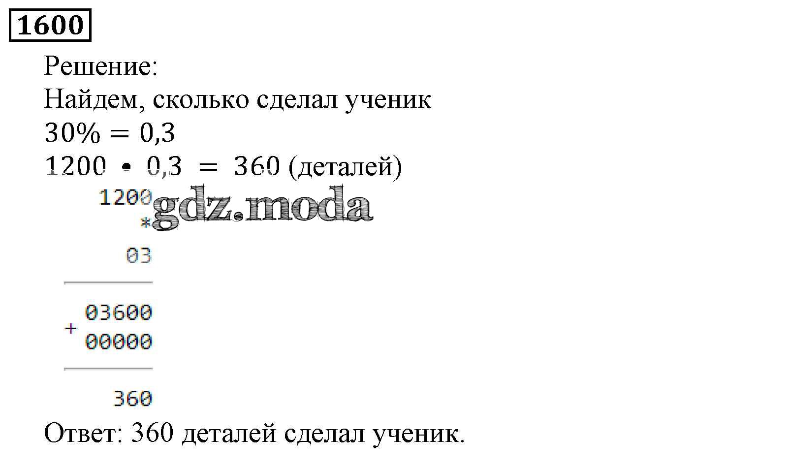 ОТВЕТ на задание № 1600 Учебник по Математике 5 класс Виленкин