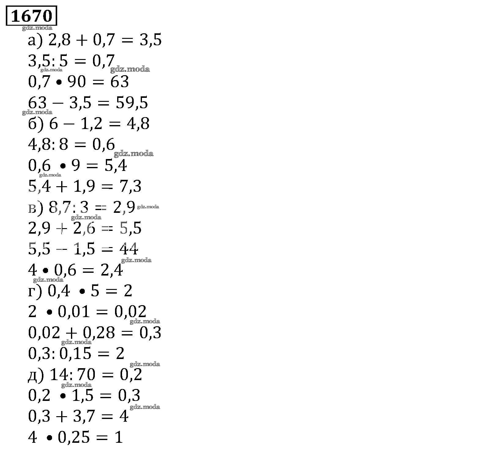 ОТВЕТ на задание № 1670 Учебник по Математике 5 класс Виленкин