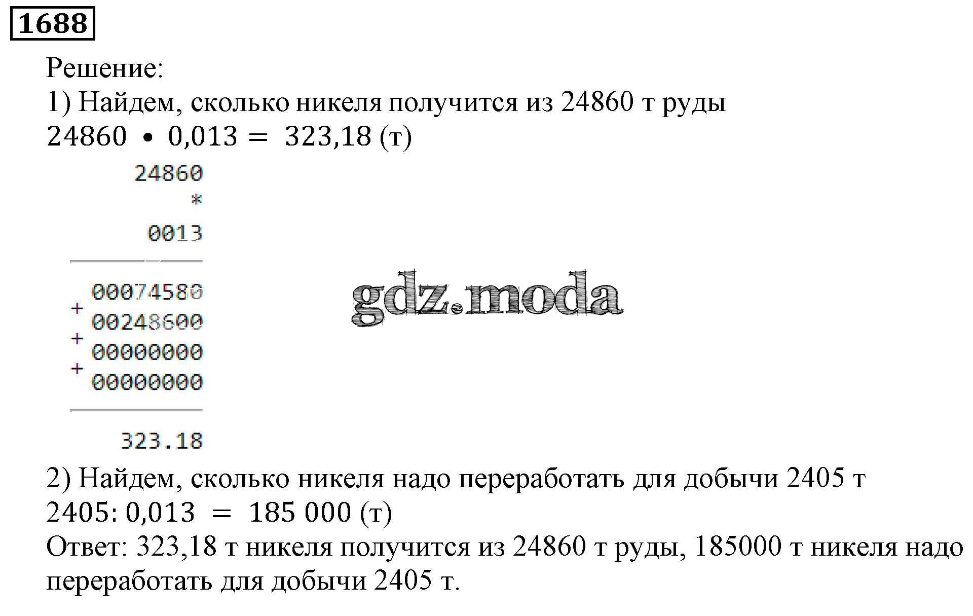 ОТВЕТ на задание № 1688 Учебник по Математике 5 класс Виленкин
