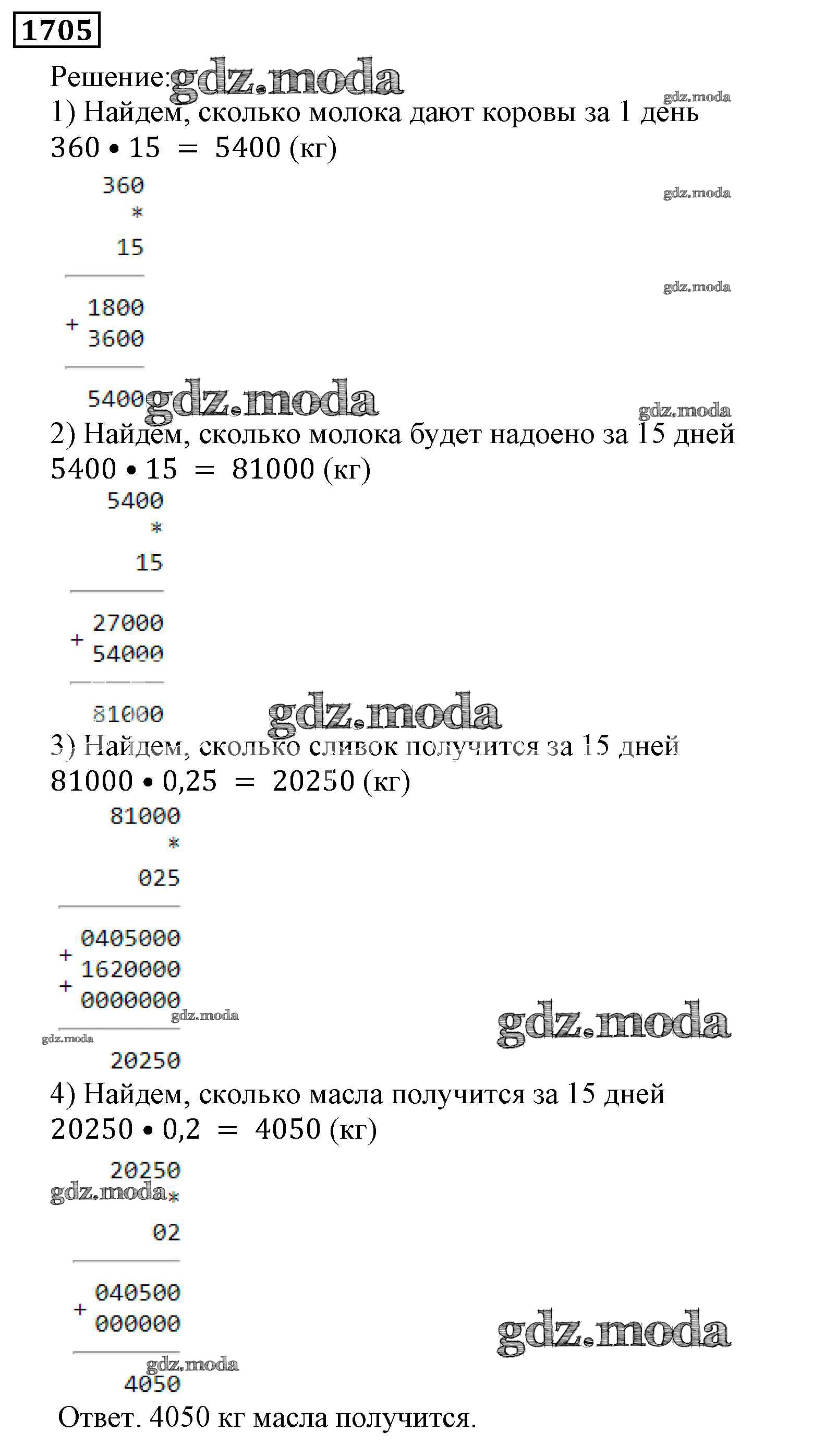ОТВЕТ на задание № 1705 Учебник по Математике 5 класс Виленкин