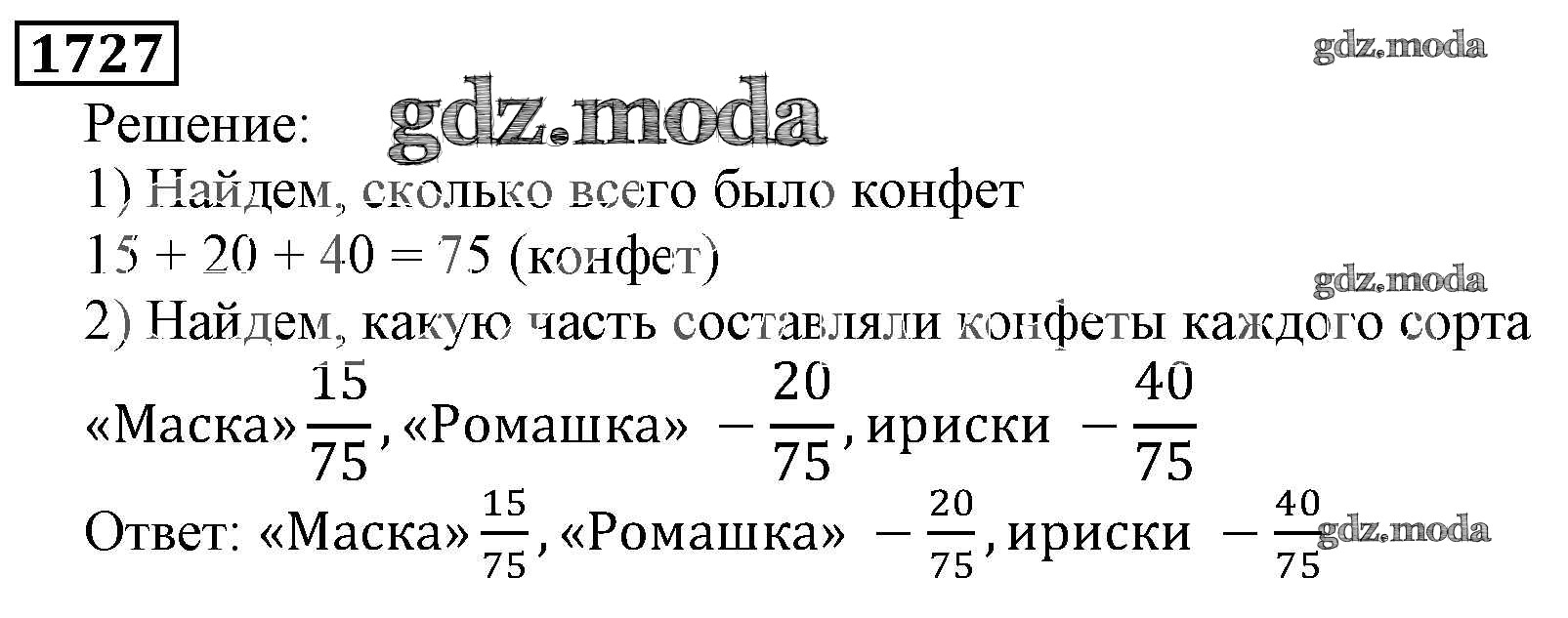 ОТВЕТ на задание № 1727 Учебник по Математике 5 класс Виленкин