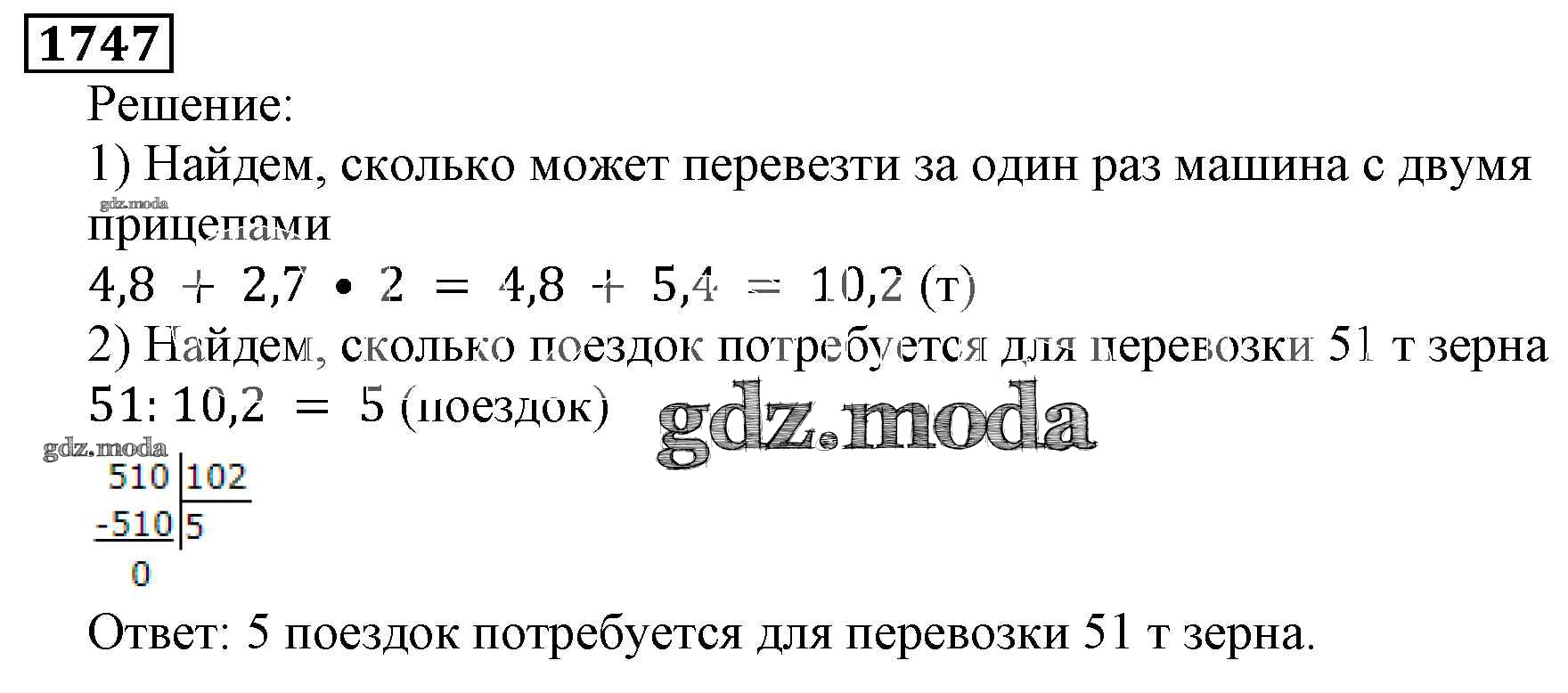 ОТВЕТ на задание № 1747 Учебник по Математике 5 класс Виленкин