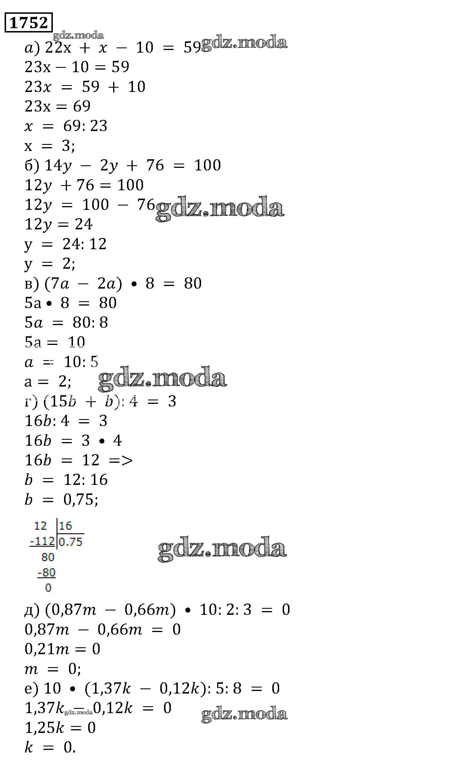 ОТВЕТ на задание № 1752 Учебник по Математике 5 класс Виленкин