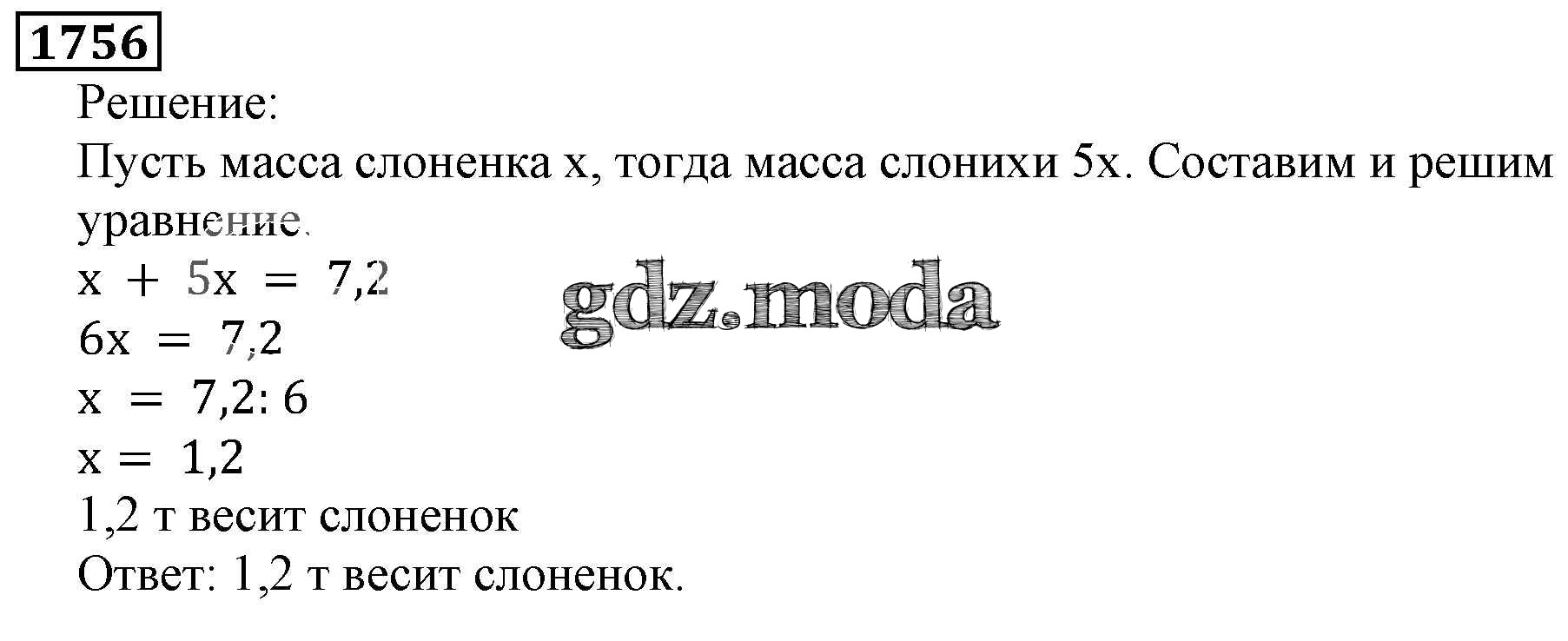 ОТВЕТ на задание № 1756 Учебник по Математике 5 класс Виленкин