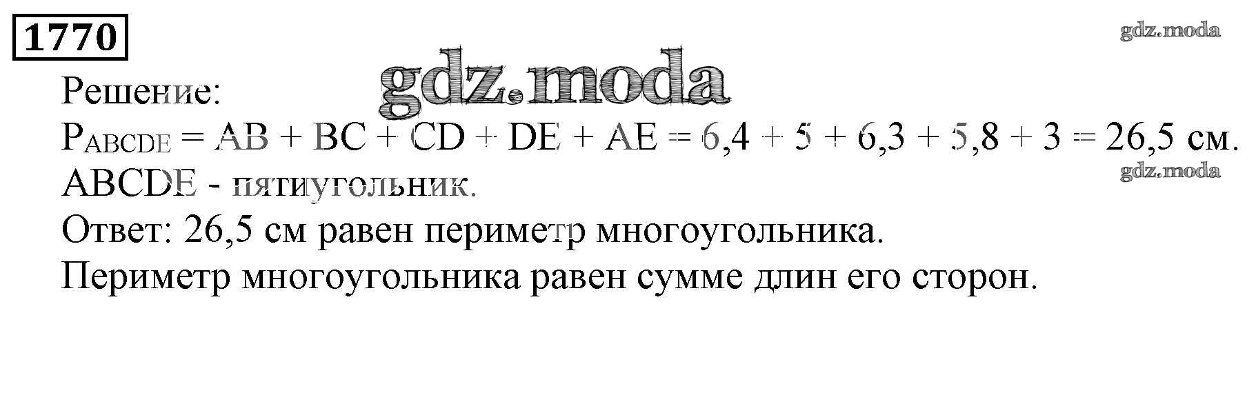 ОТВЕТ на задание № 1770 Учебник по Математике 5 класс Виленкин