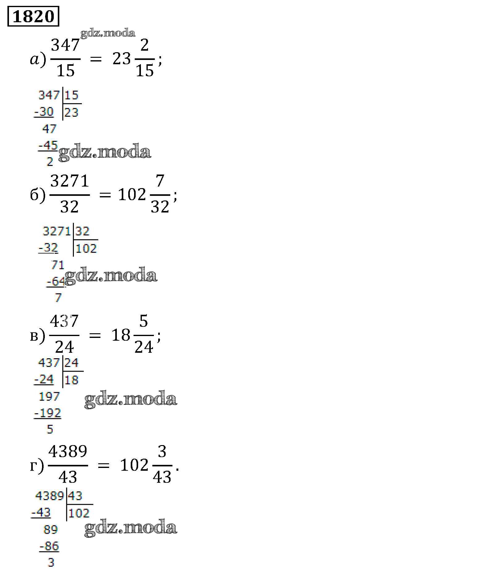 ОТВЕТ на задание № 1820 Учебник по Математике 5 класс Виленкин