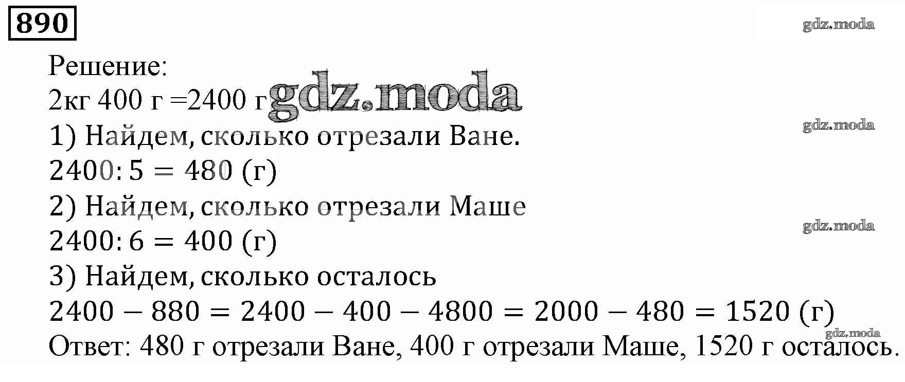 ОТВЕТ на задание № 890 Учебник по Математике 5 класс Виленкин