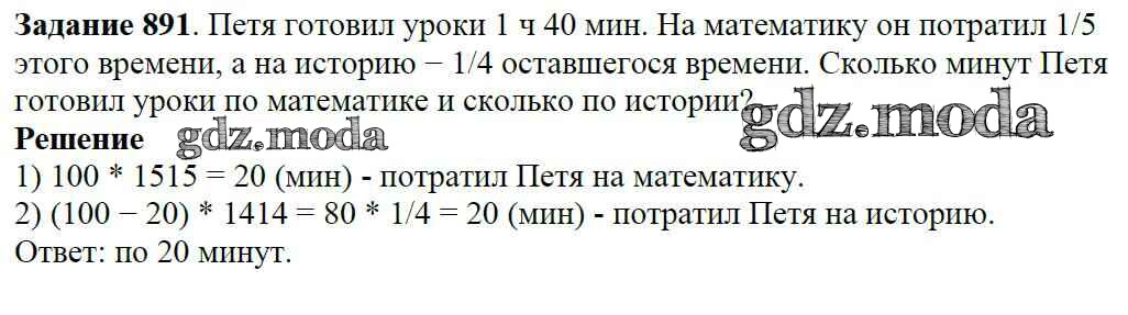 ОТВЕТ на задание № 891 Учебник по Математике 5 класс Виленкин
