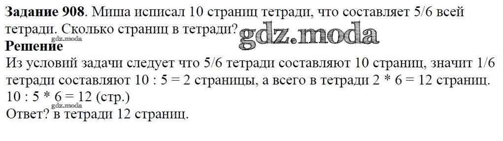 ОТВЕТ на задание № 908 Учебник по Математике 5 класс Виленкин