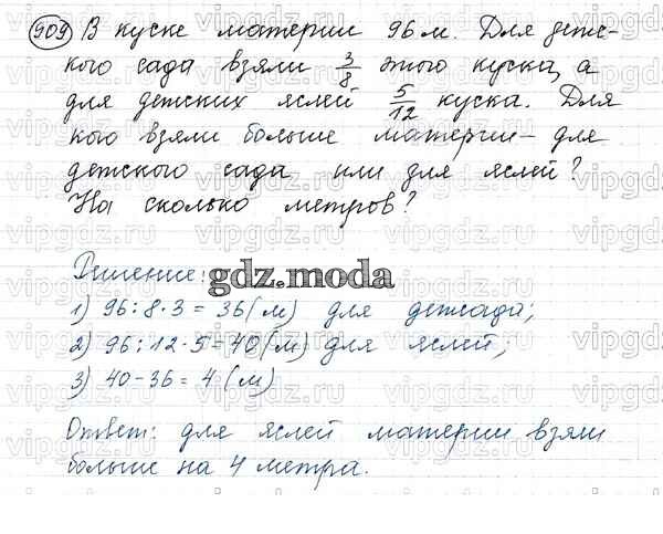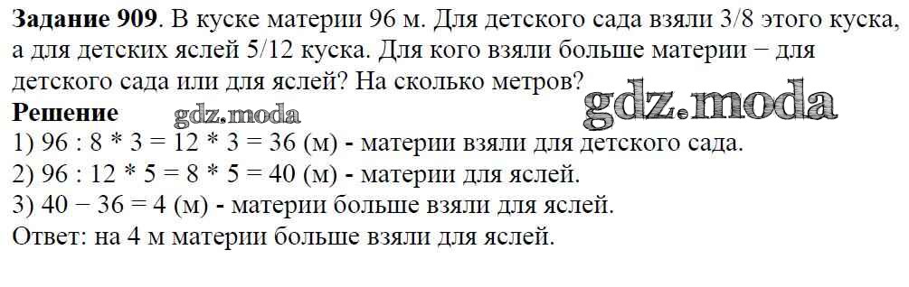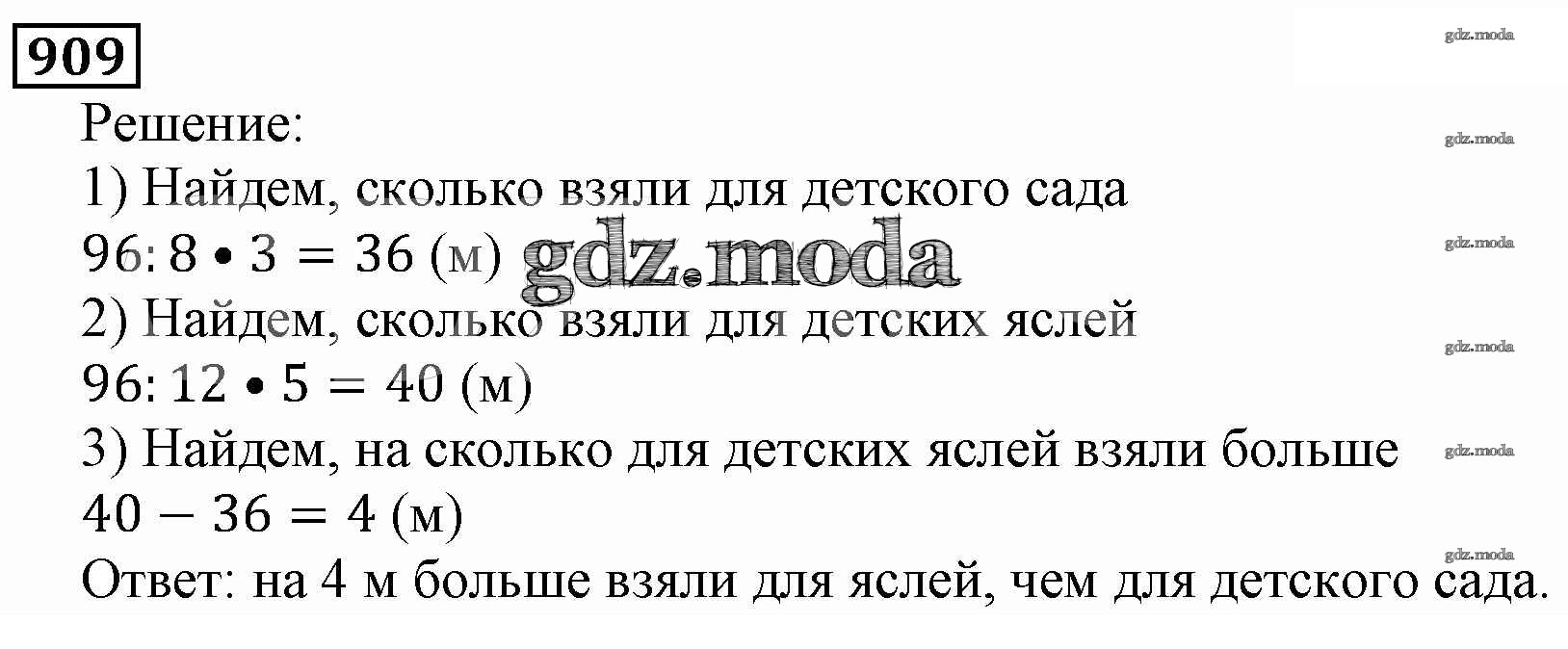 ОТВЕТ на задание № 909 Учебник по Математике 5 класс Виленкин