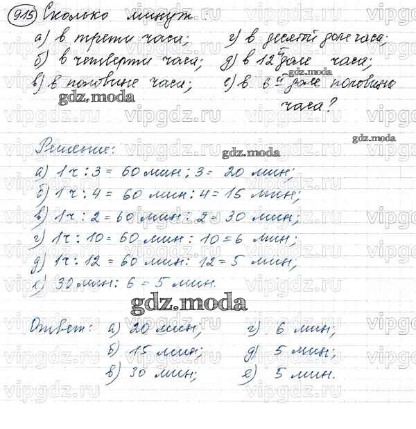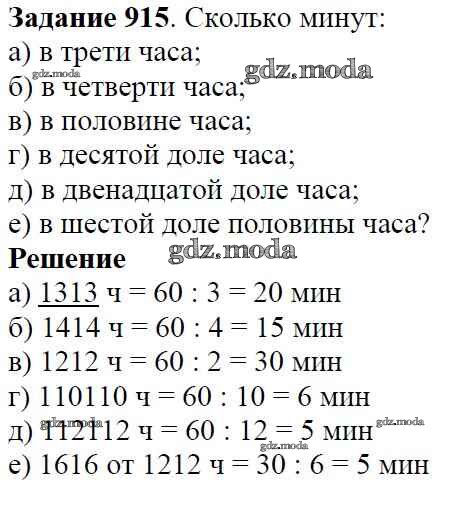 ОТВЕТ на задание № 915 Учебник по Математике 5 класс Виленкин