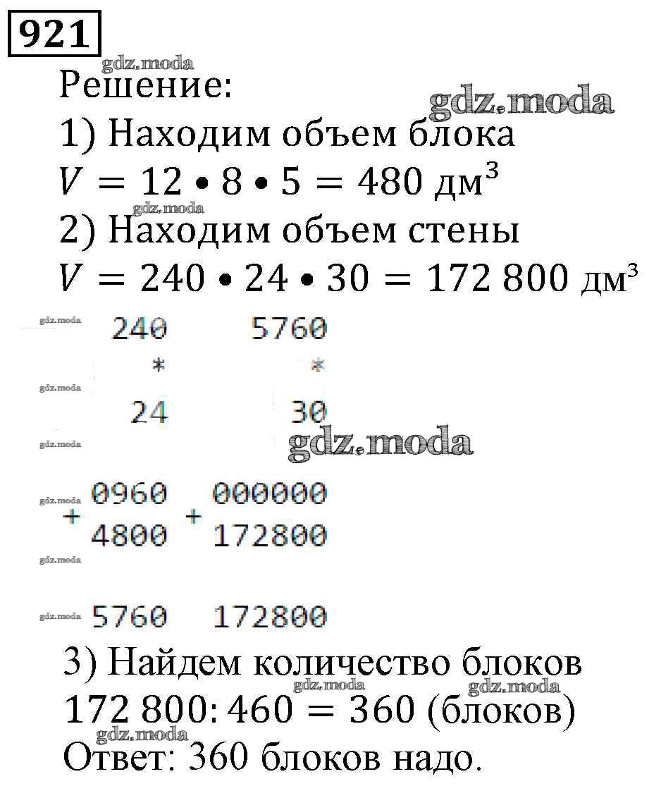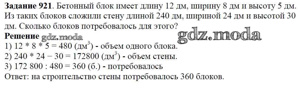 ОТВЕТ на задание № 921 Учебник по Математике 5 класс Виленкин