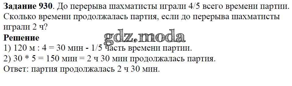 ОТВЕТ на задание № 930 Учебник по Математике 5 класс Виленкин